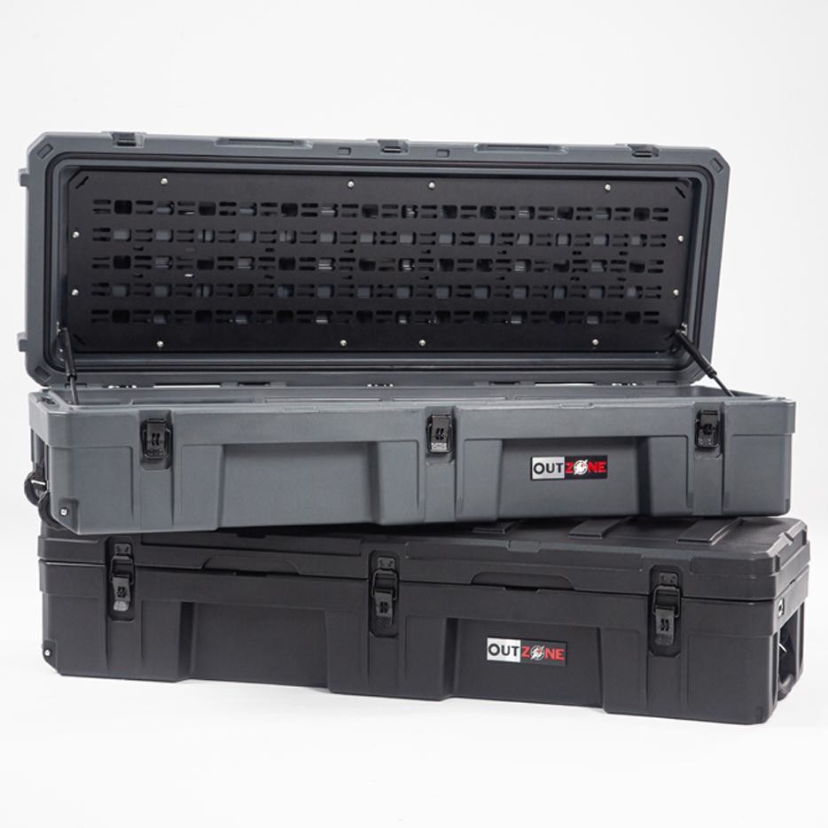 The OUTZONE 128L Rugged Case with wheels is a heavy-duty storage case that comes in 3 popular colors options & customized color and is ideal for storing your tools and dry goods that need to be packed in tight spaces. Perfect for the back seat of your car or the bed of your truck. This premium case features a durable LLDPE shell, Nylon rope handles, steel lockable latches, and a dust/water resistant gasket seal that makes sure your gear always stays protected no matter the weather or terrain. The threaded inserts in the lid give you the ability to add a lid organizer or molle panel to take your organization to the next level. Having an interlocking design makes stacking and pairing simple no matter the amount of gear you carry.