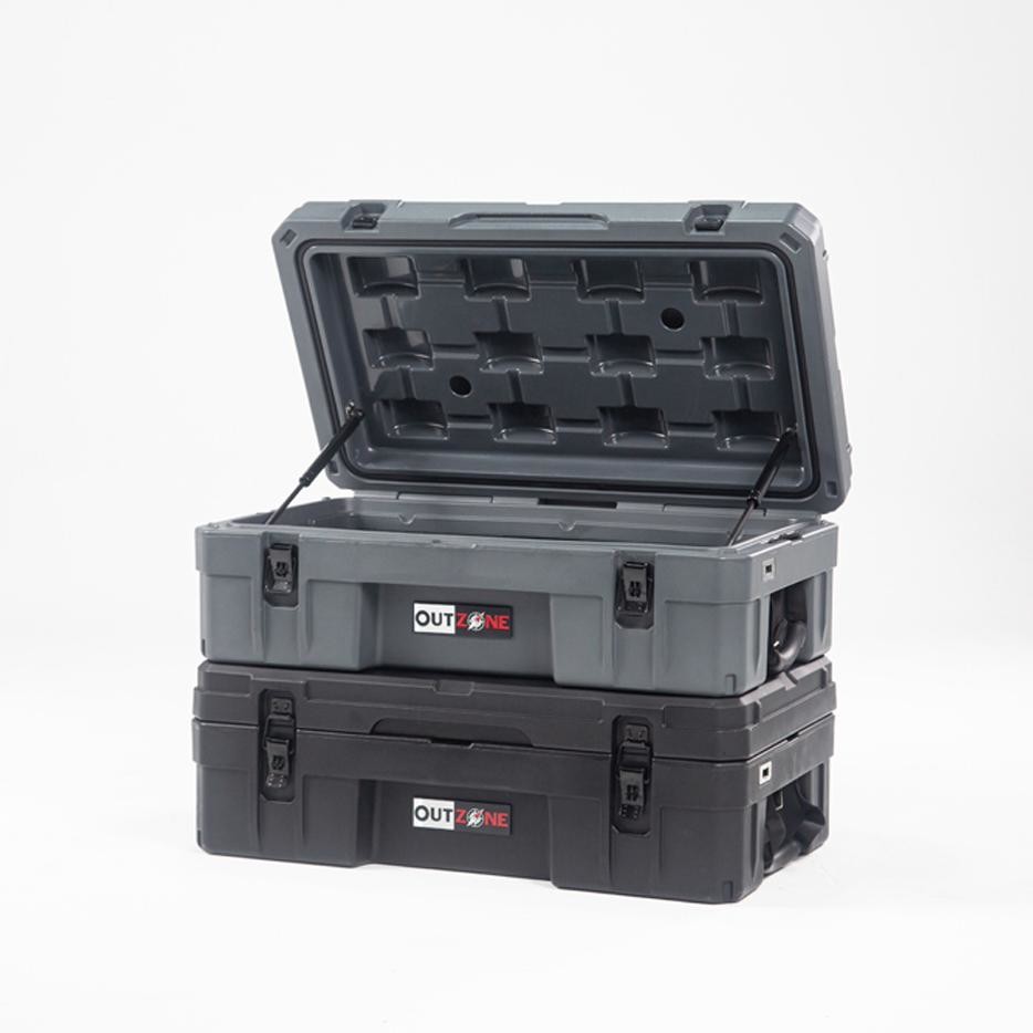 The OUTZONE 66L Rugged Case is a heavy-duty storage case that comes in 3 popular colors options & customized color and is ideal for storing your tools and dry goods that need to be packed in tight spaces. Perfect for the back seat of your car or the bed of your truck. This premium case features a durable LLDPE shell, Nylon rope handles, steel lockable latches, and a dust/water resistant gasket seal that makes sure your gear always stays protected no matter the weather or terrain. The threaded inserts in the lid give you the ability to add a lid organizer or molle panel to take your organization to the next level. Having an interlocking design makes stacking and pairing simple no matter the amount of gear you carry.