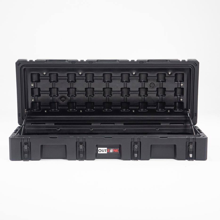 The OUTZONE 85L Rugged Case is a heavy-duty storage case that comes in 3 popular colors options & customized color and is ideal for storing your long items such as chairs, shovels, axles, recovery gear or just adding more storage to any vehicle. Rugged storage that seamlessly mounts the roof of any vehicle. This premium case features a durable LLDPE shell, our proprietary Lid-Lifts, Nylon rope handles, steel lockable latches, and a dust/water resistant gasket seal that makes sure your gear always stays protected no matter the weather or terrain. The threaded inserts in the lid give you the ability to add a lid organizer or molle panel to take your organization to the next level. Having an interlocking design makes stacking and pairing simple no matter the amount of gear you carry.
